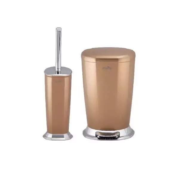 برس توالت و سطل زباله ایمن آب مدل ونیز مسی متالیک