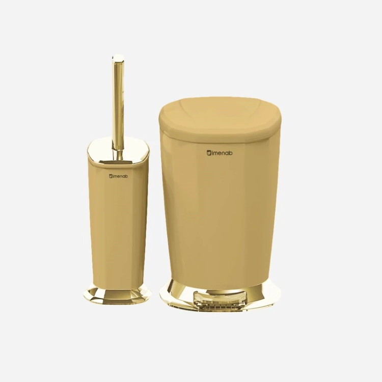 برس توالت و سطل زباله ایمن آب مدل ونیز طلایی متالیک