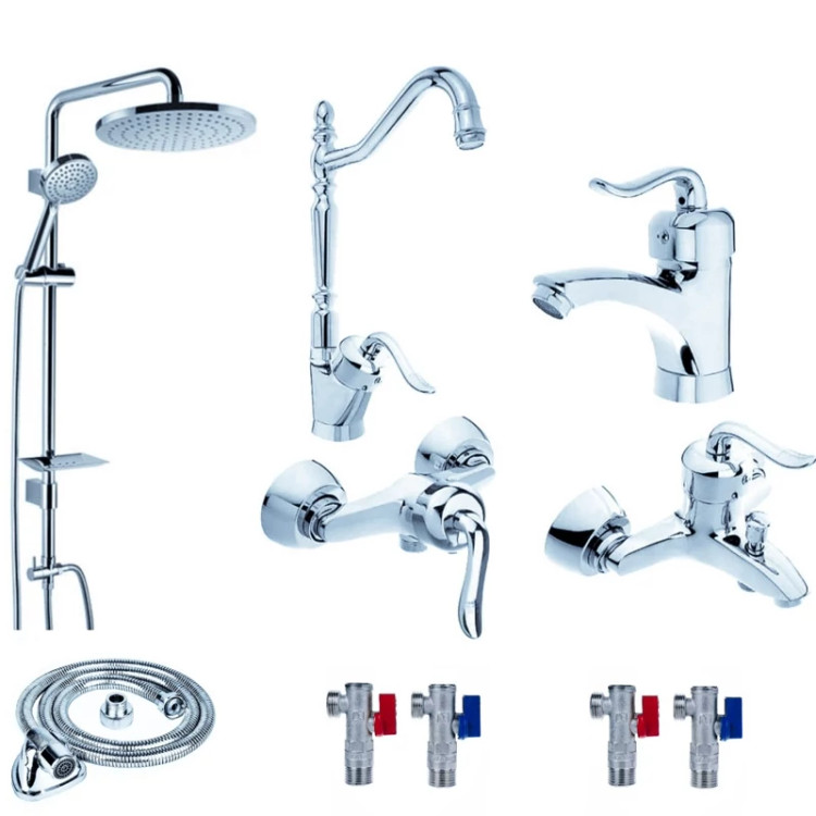 ست شیرالات مدل بیزانس پرو مجموعه 10 عددی کروم به همراه علم دوش دوکاره پرفشار