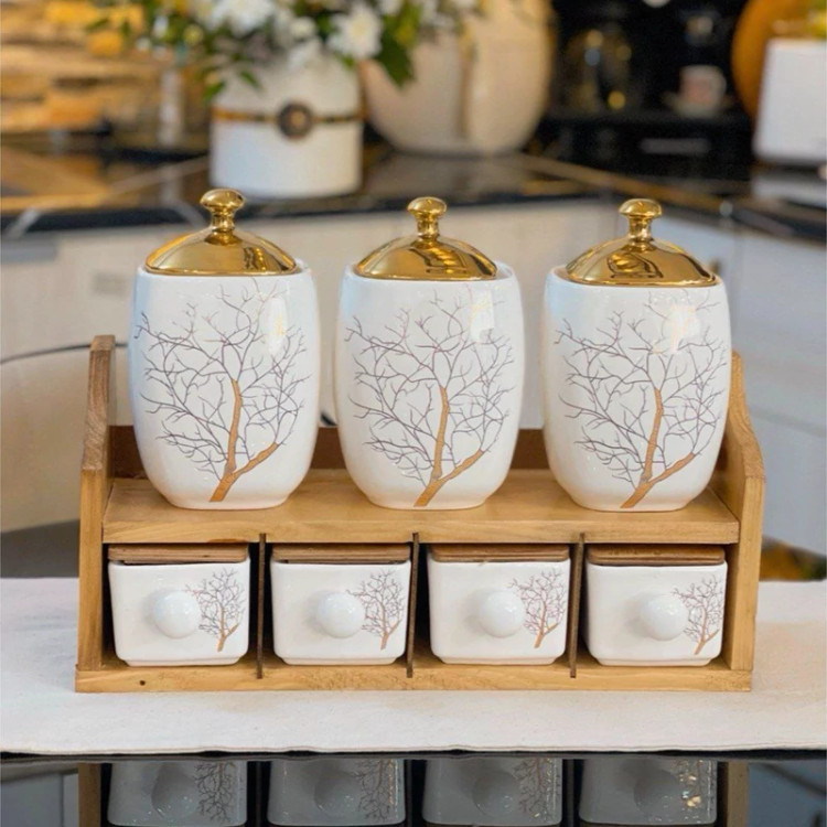این ست پاسماوری زیبا را می توان در کنار اجاق گاز و روی کابینت قرار داد،همچنین برای نگهداری انواع ادویه ها ،دمنوش ها ،چای ،قند،شکر،نبات ،و… استفاده کرد و با توجه به ظاهر زیبا و جذاب استند چوبی با کیفیتی که دارد جلوه خاصی به آشپزخانه شما می بخشد