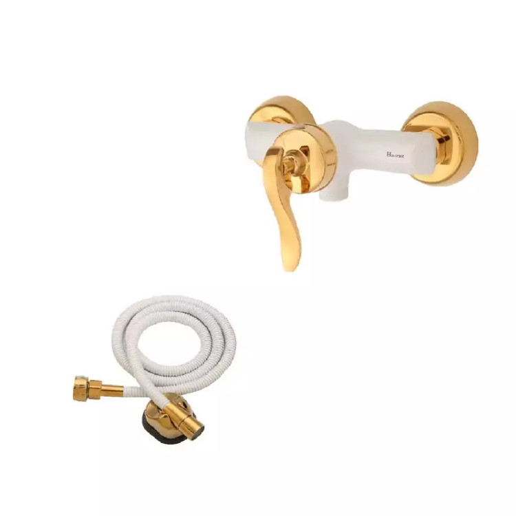 شیر توالت مدل قاجاری سفید طلایی به همراه شلنگ