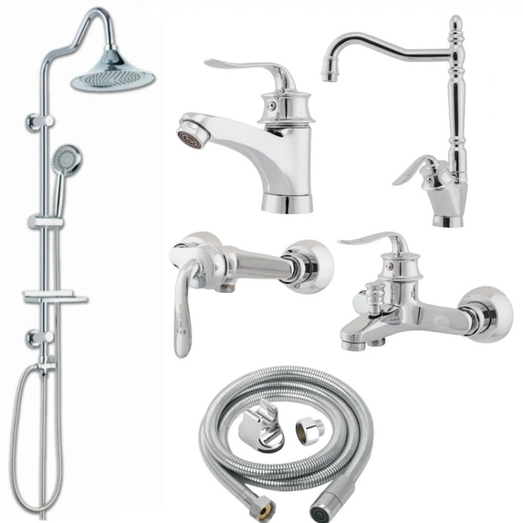 ست شیرآلات مدل هلنا مکس مجموعه 6 عددی کروم به همراه علم دوش دوکاره شیپوری و شلنگ سرویس بهداشتی