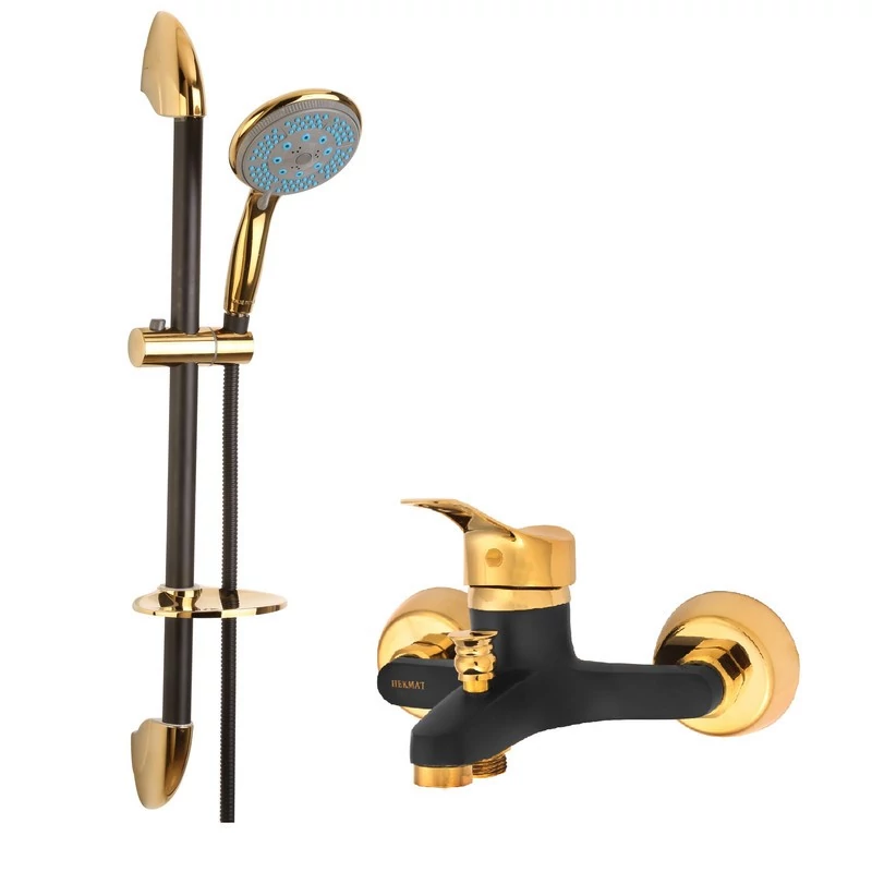 شیر حمام مدل دیبا مشکی طلایی به همراه علم دوش