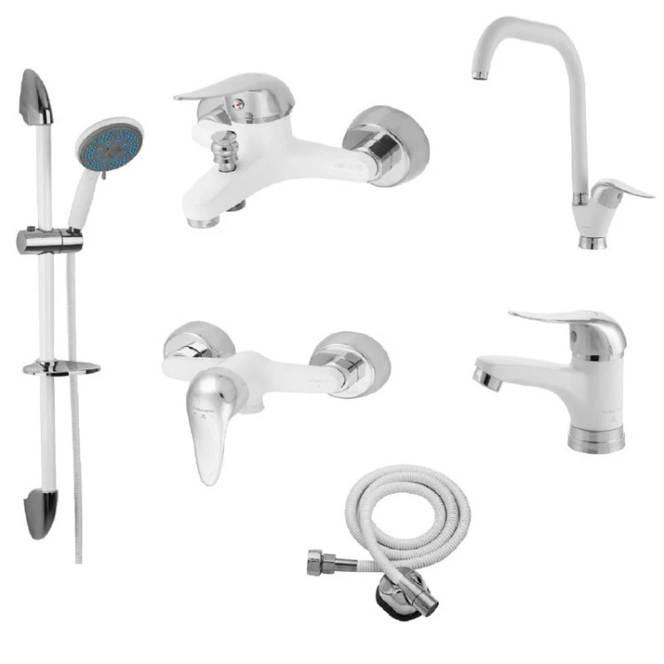 ست شیرآلات مدل ارکیده سفید کروم مجموعه 6 عددی