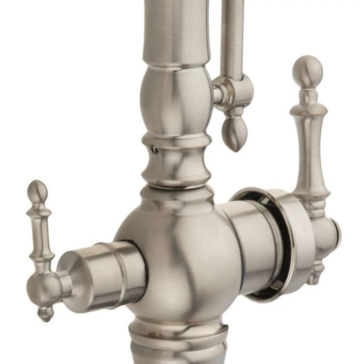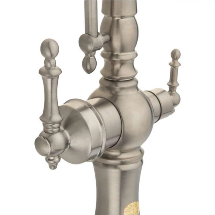 مشتری ولی نعمت ماست شیر آشپزخانه فوق سنگین دومنظوره فنردار کروم مات آبکاری ۳ مرحله ای پی وی دی سخت کاری شده و مقاوم در برابر مواد شوینده شیمیایی و اسیدی دارای کاتریج سرامیکی با طول عمر برابر کاتریج های معمول بهترین آبکاری برای رهایی از جرم و رسوب و لک روی شیرالات(مات ضد جرم) قابلیت نصی برروی انواع سینک های استیل و گرانیتی دارای ۸ سال گارانتی تاییدیه استاندارد اروپا ce دارای نشان استاندارد ملی و ایزو بین المللی تنه سنگین و تمام برنجی آنالیز شده کاتریج بزرگ پرفشار سایز ۴۰ و دارای شیر تصفیه آب جداگانه با ورودی و خروجی آب مجزا(نیاز به سوراخ کاری دوباره سطح سینک جهت نصب فیلتر تصفیه آب نیست) دارای ارتفاع بلند جهت شستشوی آسانتر ظروف