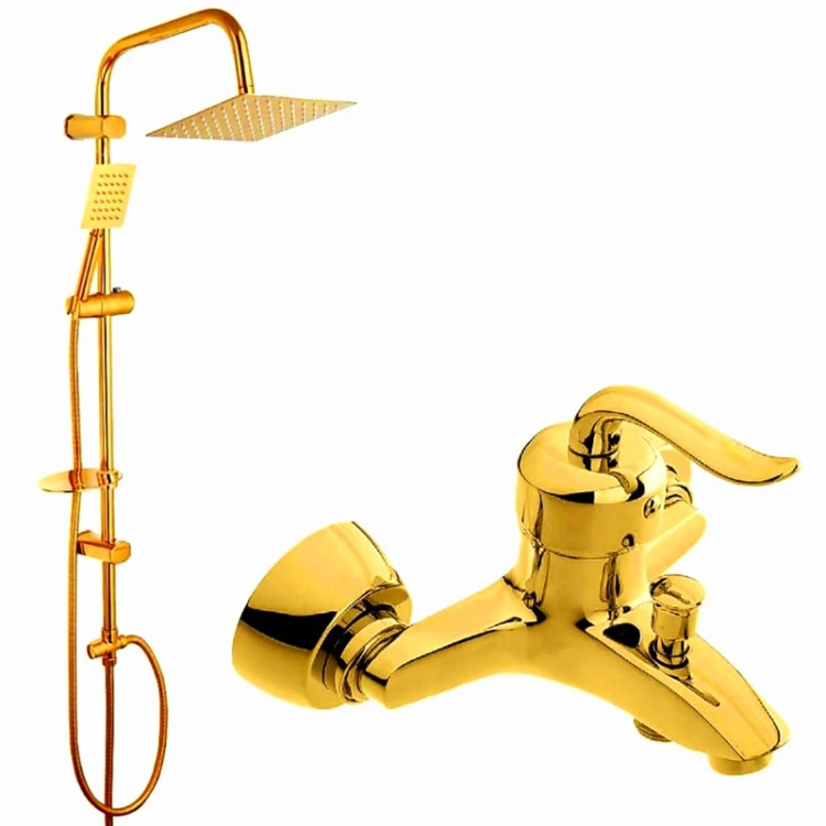 شیر حمام مدل بیزانس رویال به همراه علم دوش حمام دوکاره تمام استیل طلایی