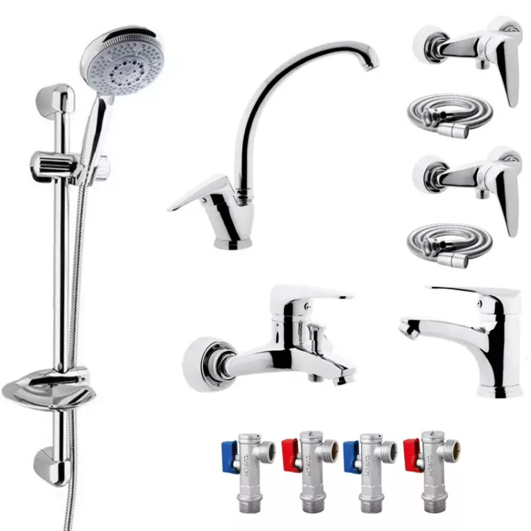 ست شیرآلات اقتصادی مجموعه 12 عددی کروم به همراه علم دوش حمام پرفشار و شلنگ سرویس بهداشتی برنجی