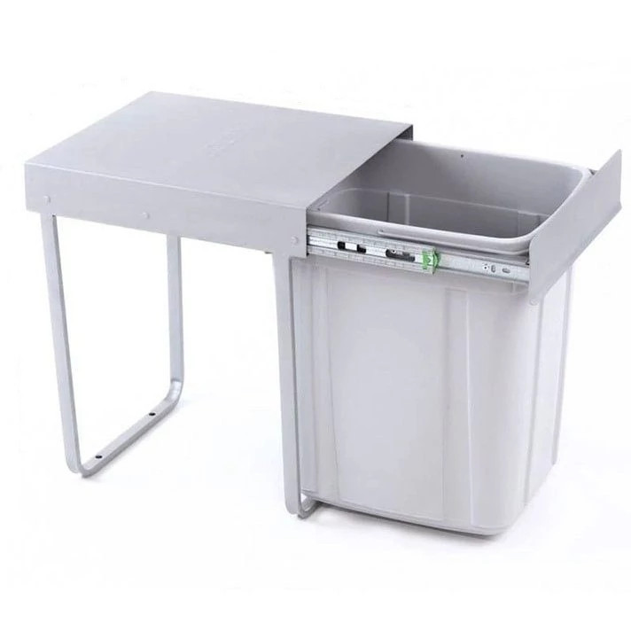 سطل زباله توکار طوسی رنگ بوده و اجزاء تشکیل دهنده ی آن شامل چهارچوبی فلزی و یک مخزن پلاستیکی است. کیفیت و به کارگیری مواد اولیه ی مرغوب در کلیه ی بخش های این سطل به چشم می خورد. چهارچوب فلزی محصول با رنگ کوره ای یا پودری الکترواستاتیک پوشش داده شده که آن را در برابر گرما و رطوبت مقاوم می سازد. همچنین جنس مخزن سطل از پلاستیک فشرده و درجه یک تشکیل شده است. این مزایا برای لوازم پرکاربردی همچون سطل زباله در آشپزخانه اهمیت دارد.