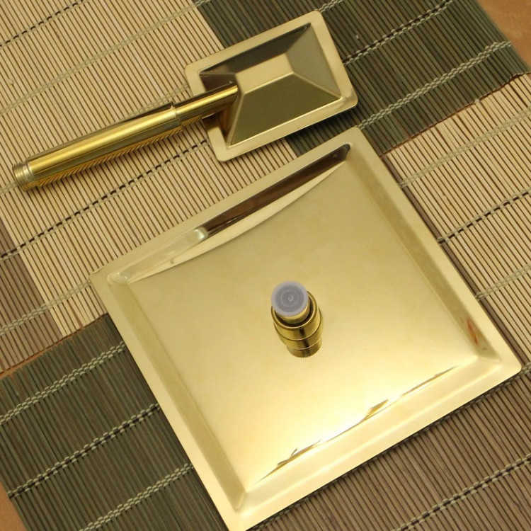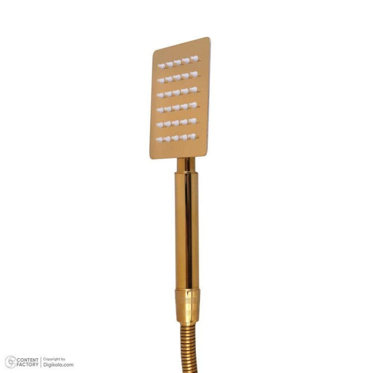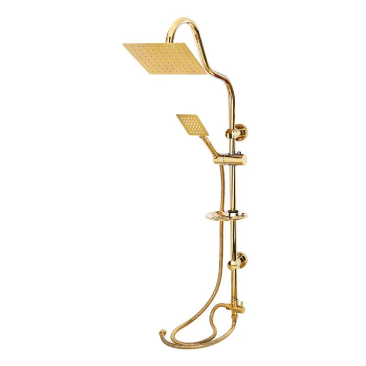 علم دوش دو کاره دارای دوش ثابت طلایی و دوش دستی و محل نگهداری صابون با بدنه استیل 304 با کیفیت بالا