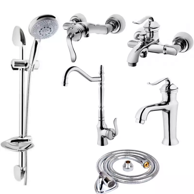 ست شیرآلات مدل آرنیکا 2 پلاس مجموعه 6 عددی کروم به همراه علم دوش حمام و شلنگ سرویس بهداشتی