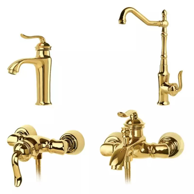 ست شیرآلات سارینا مدل هلن طلایی با پوشش PVD نانو دارای دیزاین و طراحی خاص میباشد که دارای ثبات و ماندگاری بالا است . این مجموعه شامل شیر ظرفشویی ، روشویی ، توالت و حمام است . این محصول دارای نشان استاندارد ملی ایران و اروپا میباشد . کلیه متعلقات و قطعات مصرفی این برند از مواد اولیه مرغوب و با کیفیت است .
