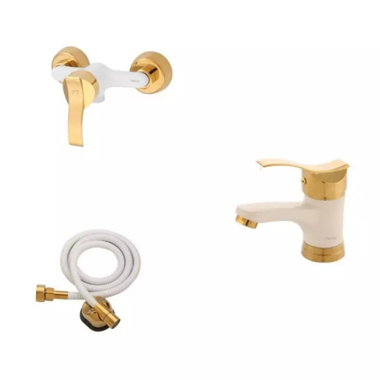 ست شیرآلات مدل موج سفید طلایی مجموعه 3 عددی