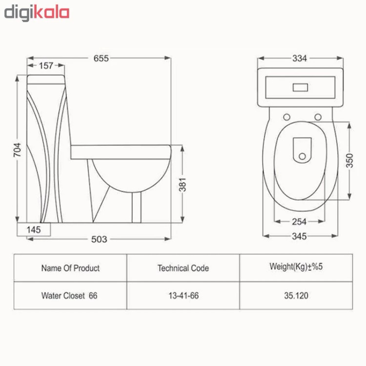 توالت فرنگی مروارید مدل دیاموند 66 درجه 1