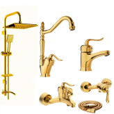 ست شیرآلات مدل بیزانس نایس طلایی مجموعه 6 عددی به همراه علم دوش حمام دوکاره و شلنگ سرویس بهداشتی