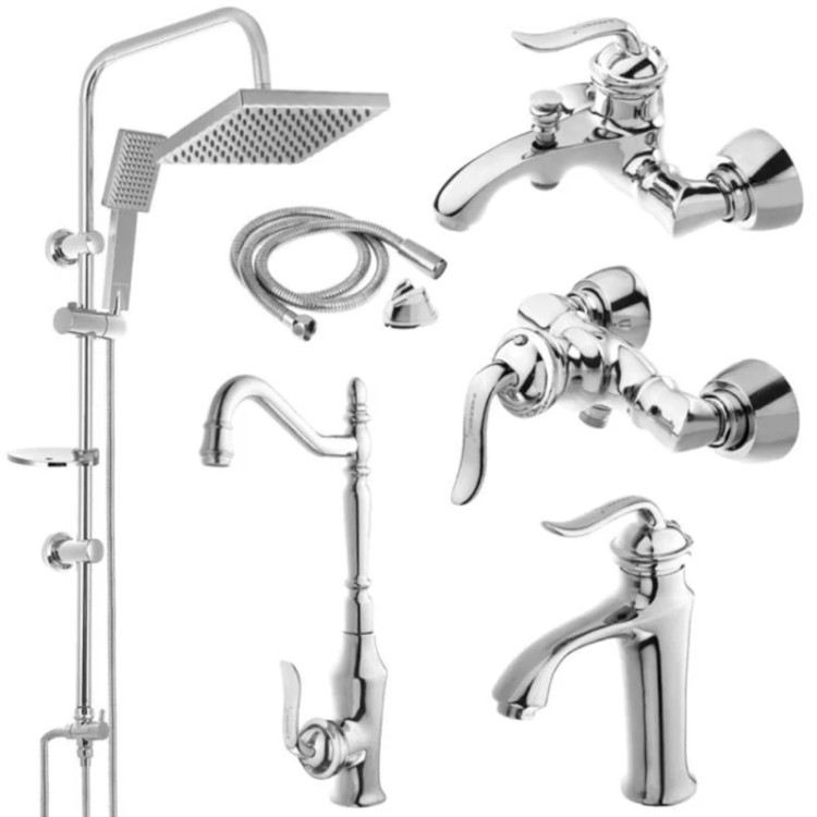ست شیرآلات مدل بامبو رویال کروم مجموعه ۶ عددی شامل: ۱ عدد شیر روشویی ۱ عدد شیر سرویس بهداشتی ۱ عدد شلنگ سرویس بهداشتی ۱ عدد شیر حمام ۱ عدد شیر آشپزخانه ۱ عدد علم دوش دوکاره دارای گوشی و سردوش متحرک مجزای جدید میباشد این محصول دارای تاییدیه سازمان استاندارد ملی ایران میباشد. جنس این محصول و تمام برنجی بوده و در برابر فشار آب تا 15bar مقاومت دارد. این محصول دارای بالاترین سطح استاندارد های حال حاضر صنعت شیرالات بوده و از مرغوبترین مواد اولیه تولید میگردد. کاتریج به کار رفته در این محصول از نوع سایز ۴۰ بزرگ پرفشار(عدم کاهش فشار آب خروجی به علت سایز استاندارد کاتریج)و مقاوم در برابر جرم و رسوب میباشد. این محصول قابلیت نصب برروی انواع لوله کشی های روکار و توکار را دارد جهت به حداقل رساندن خطای انسانی که در معدود شیر ها هنگام ریخته گری روزنه و شکاف در بدنه شیر ها ایجاد شده و باعث عدم کارایی شیر و نشتی آب میشود تمامی تنه های شیرالات را در دستگاه انالیز با فشار ۱۸ بار تست میشوند. جهت رفاه حال خریدار محترم تمامی لوازم جانبی جهت نصب در داخل بسته بندی موجود میباشد.