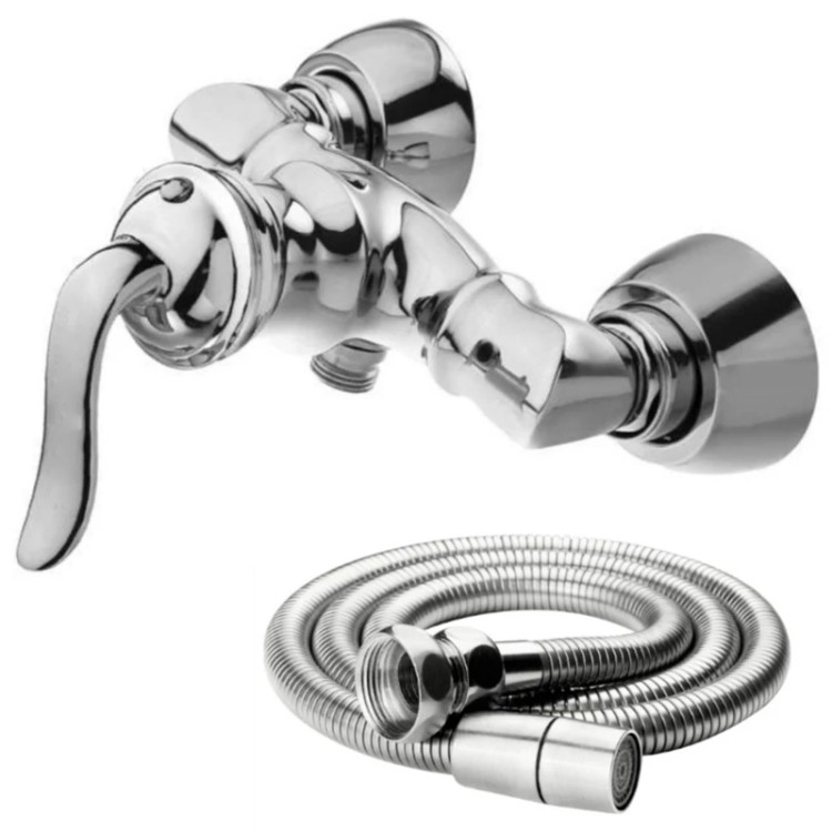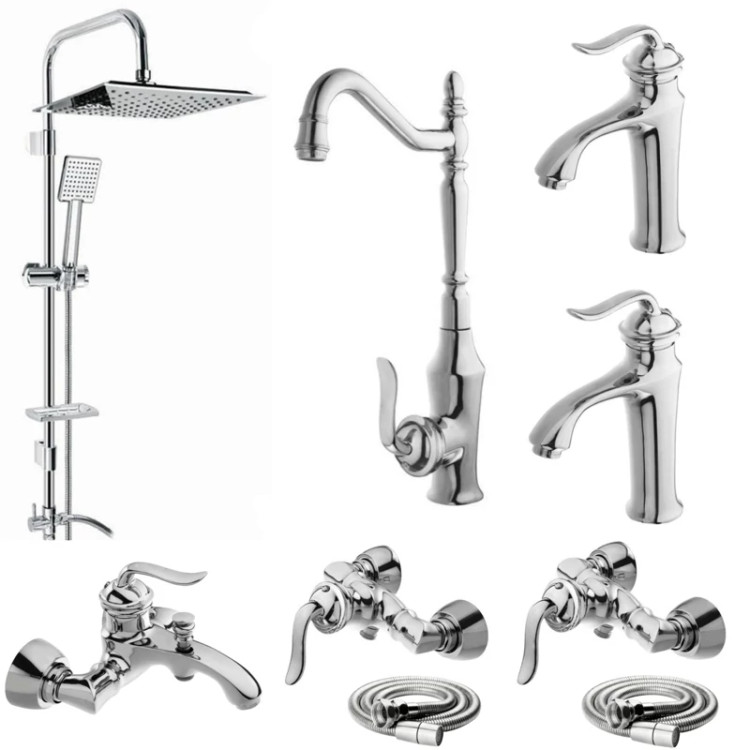 ست شیرآلات مدل بامبو پلاس کروم مجموعه 9 عددی به همراه علم دوش حمام و شلنگ سرویس بهداشتی