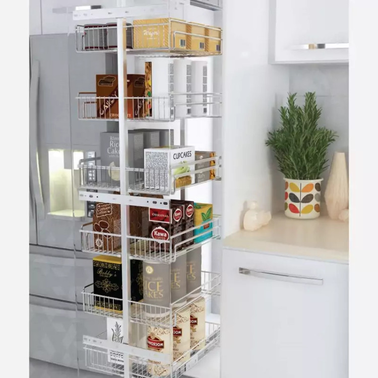 یکی از مواردی که معمولا در طراحی کابینت های کم عرض و عمیق مطرح می شود دسترسی آسان به کلیه ی بخش های کمد به خصوص قسمت انتهایی آن است. به همین منظور نصب سوپر مارکت کابینت مانند سبد سوپری وسط می تواند گزینه ای کاملا مناسب برای فضاهایی با ویژگی یاد شده باشد. به عنوان مثال اگر یک فضای خالی کم عرض و عمیق کنار یخچال خود دارید، ابتدا برای آن یک کابینت طراحی کرده و سپس سبد سوپری متناسب با یونیت را قرار دهید