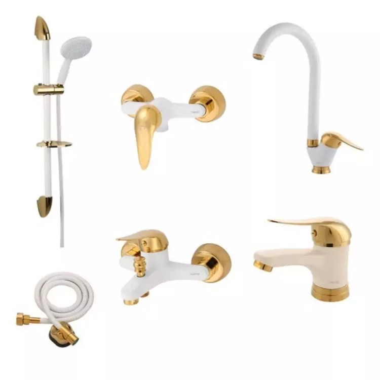 ست شیرآلات مدل سفید طلایی اردکی مجموعه 6 عددی