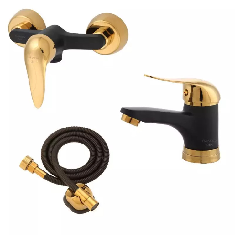 ست شیرآلات مدل ارکیده مشکی طلایی مجموعه 3 عددی