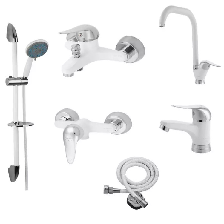 ست شیرآلات مدل ارکیده سفید کروم 2 مجموعه 6 عددی