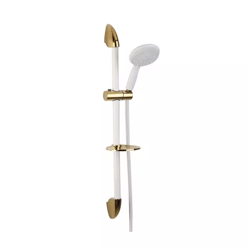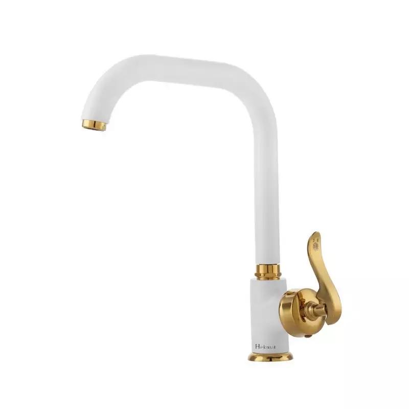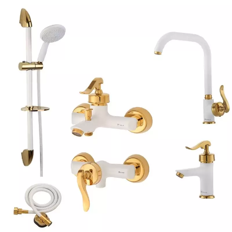 ست شیرآلات مدل قاصدک سفید طلایی همراه با علم دو خم سفید طلایی مجموعه 6 عددی