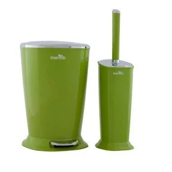 برس توالت و سطل زباله ایمن آب مدل ونیز سبز متالیک