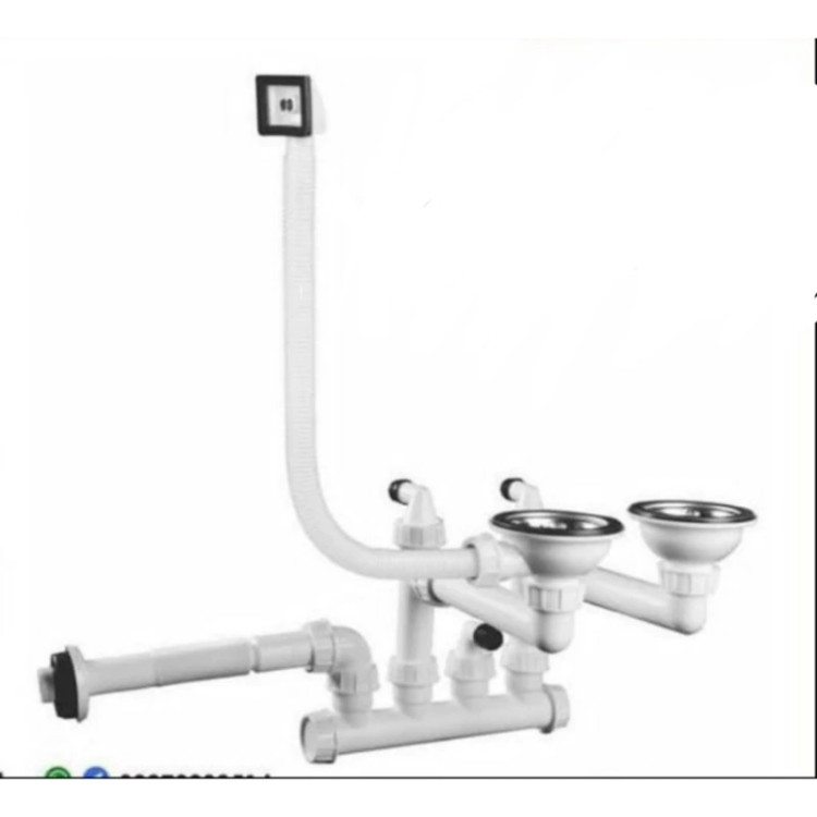 سیفون دولگنه فانتزی کم جا با سرریز فرم دار سینی قابل نصب برای ظرفشویی های دولنگه