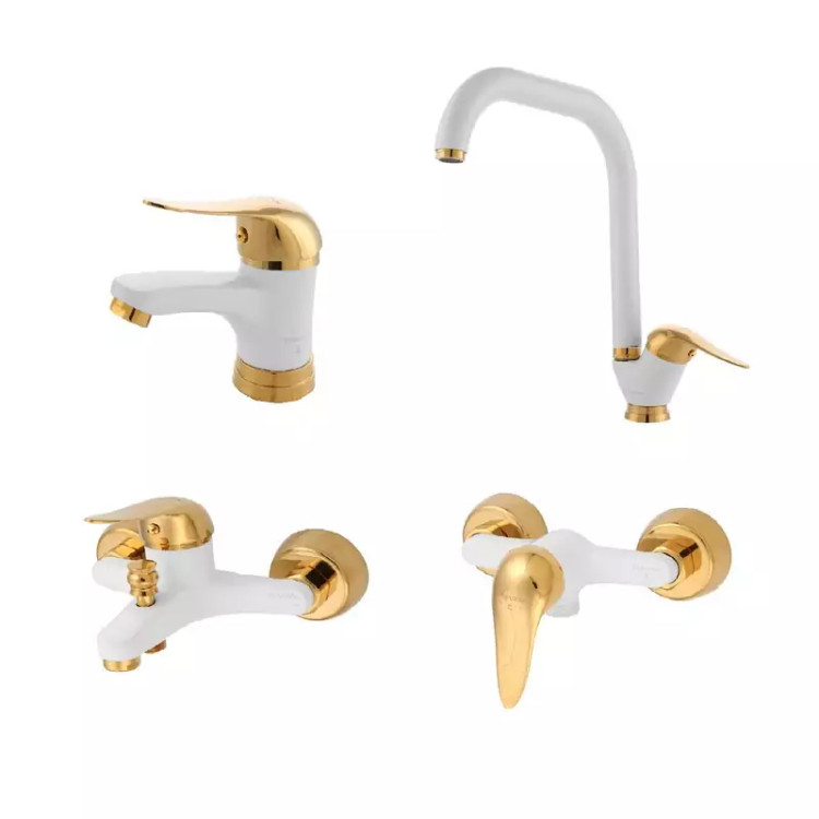 ست شیرآلات مدل ارکیده سغید طلایی مجموعه 4 عددی