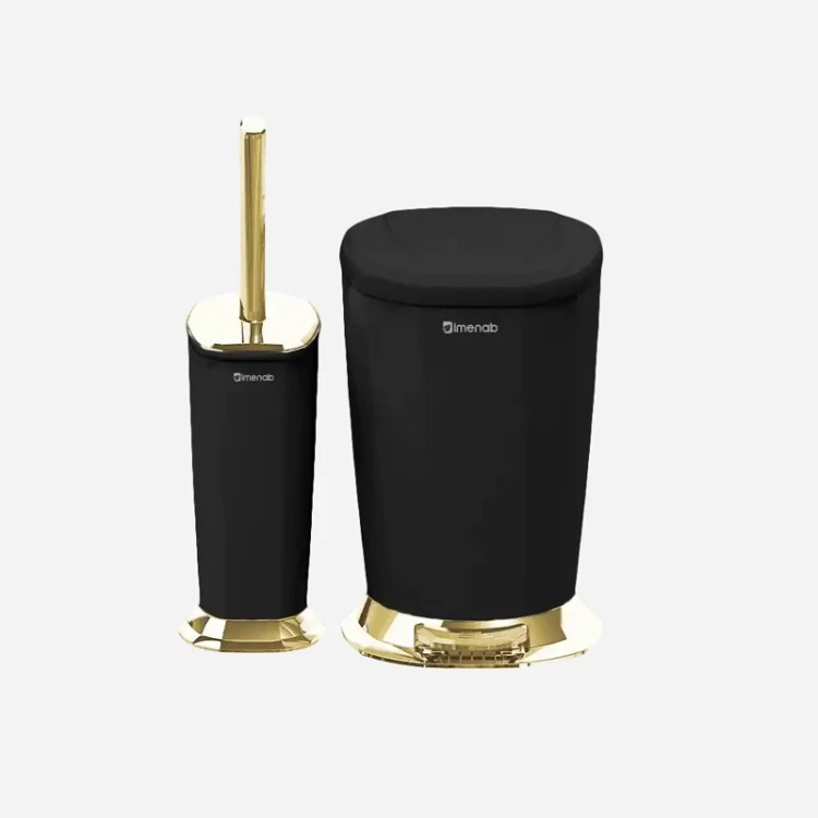 برس توالت و سطل زباله ایمن آب مدل ونیز مشکی طلایی