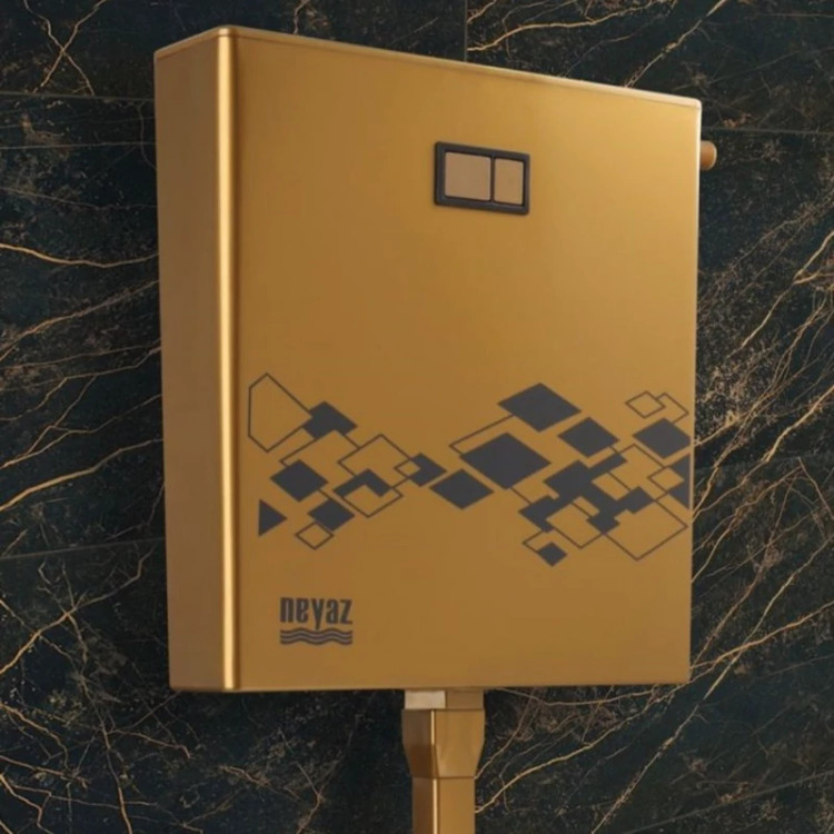 فلاش تانک فوق باریک کتابی نیاز مدل طلایی به همراه لوله و اتصالات مکعبی