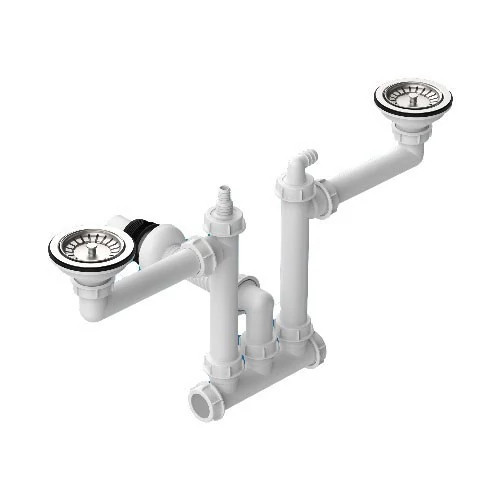 سیفون دو لگنه محک در این کارخانه در کیفیت بسیار عالی و بی نظیری ساخته شده است. این محصول بین دو لگن سینک ظرف شویی و لوله تخلیه فاضلاب نصب می شود و کاربرد بسیار مهمی دارد.