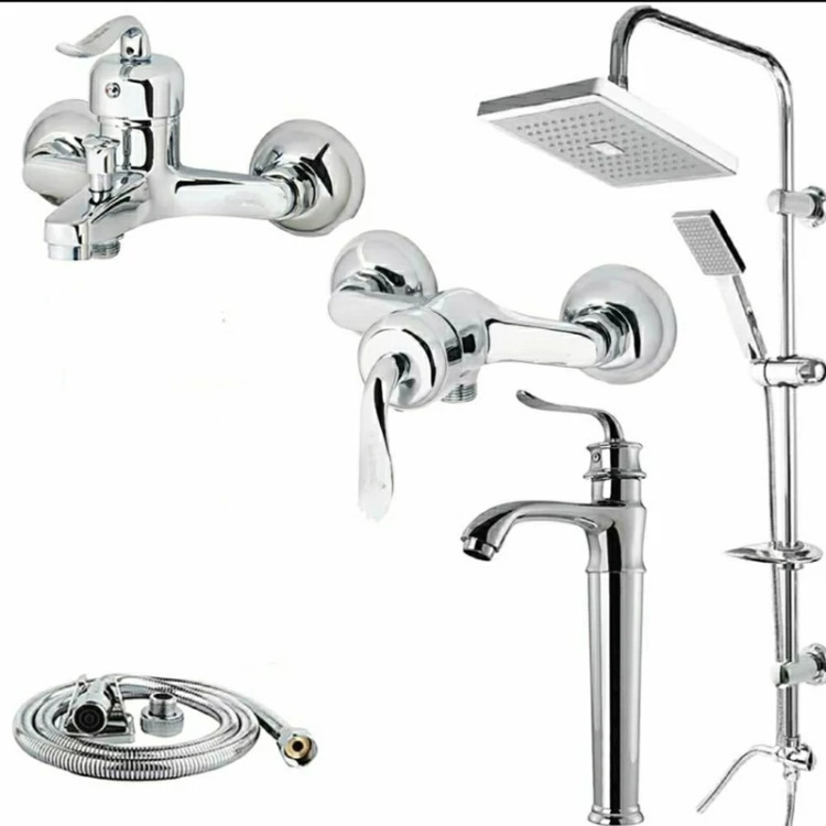 ست شیر آلات قاجاری کروم 5تایی.(دوش توالت روشویی بامبو 15cm با علم دو کاره)