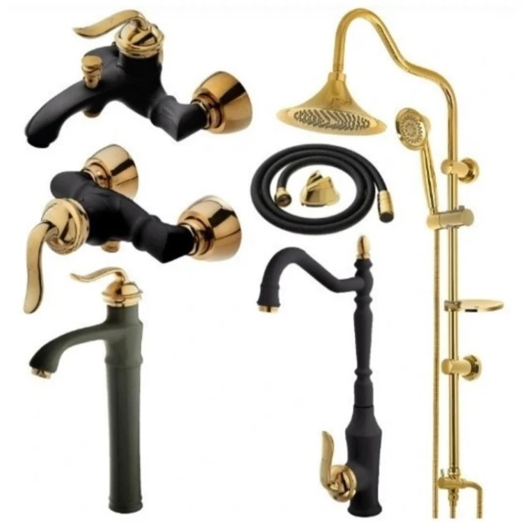 ست شیرآلات بامبو مشکی 6تایی طلایی