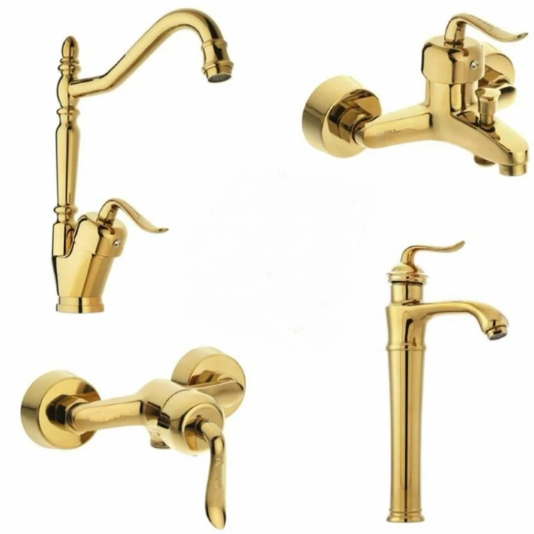 ست شیر آلات قاجاری طلایی با روشویی پایه بلند4تایی