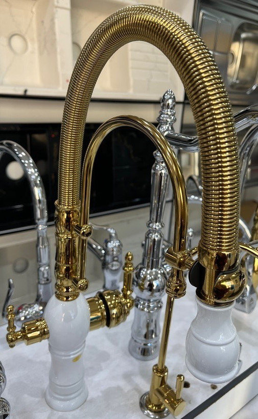 شیر ظرفشویی دو کاره فنری سفید طلایی مدل فلورانس