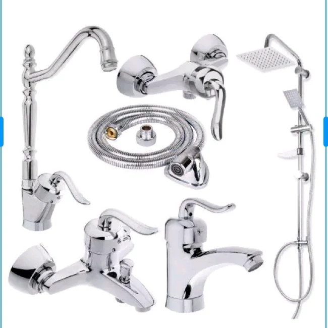 ست شیر آلات 6 تکه شیر آلات کروم قاجاری دوش دوکاره رسوب گیر