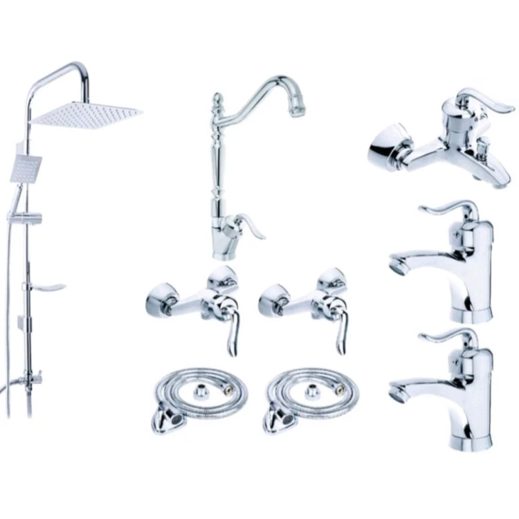 شامل 6عدد شیر و دوش حمام و 2 عدد شیلنگ سرویس و لوازم همراه
