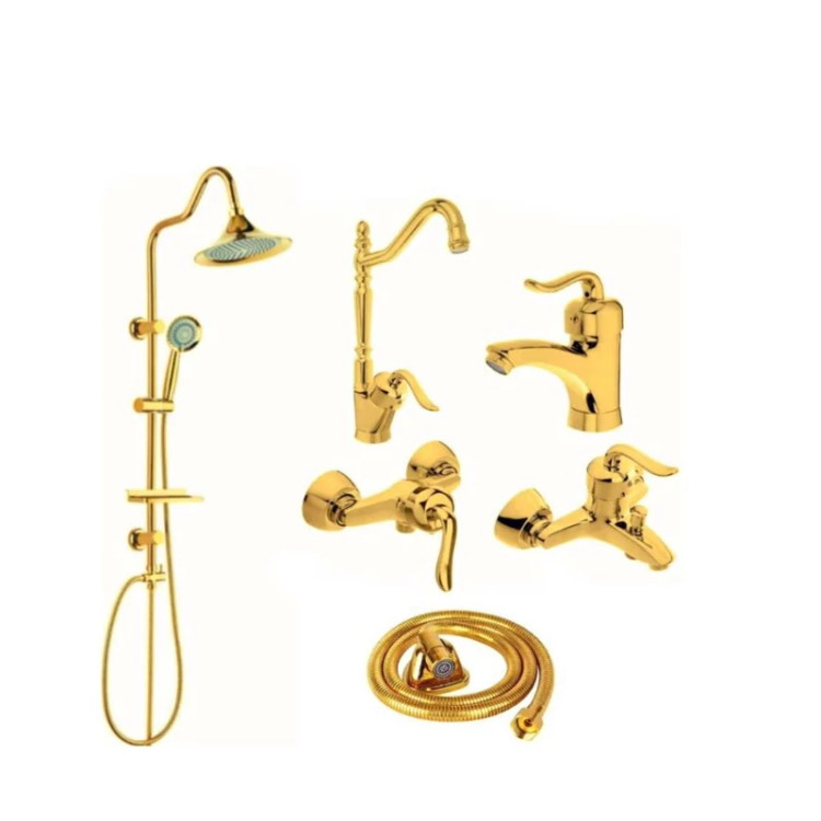 ست شیر آلات طلایی قاجاری و علم شیپوری با شیلنگ