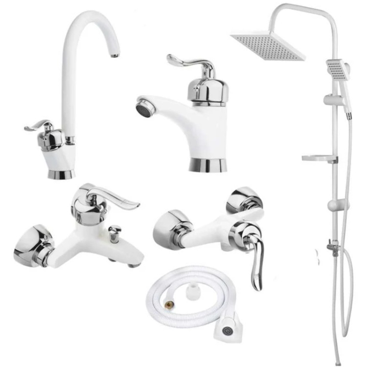 ست شیر آلات سفید کروم قاجاری عصایی همراه دوش دوکاره و شیلنگ سرویس
