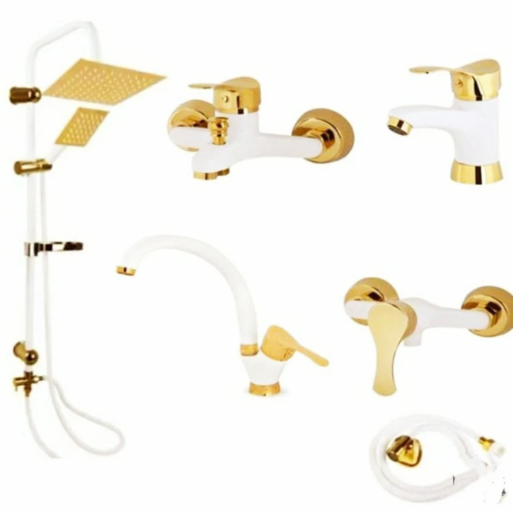 ست شیرآلات 6 تیکه سفید طلایی لاله