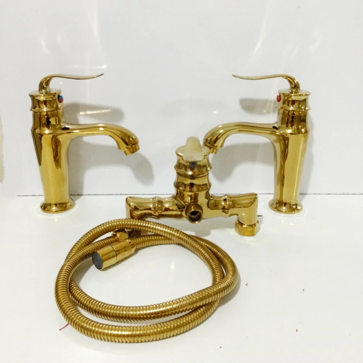 ست شیرآلات 2روشویی وتوالت بامبو طلایی