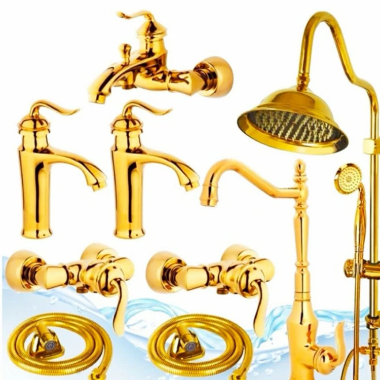 گروه تولیدی شیرآلات آرین شیر آلات 9تیکه با 5سال ضمانت داده میشود رنگ طلایی براق این محصول از آلیاژ برنج هستش وطبق دستگاه در آزمایشات مربوط تولید میشود شیر آلات بسته بندی به شما عزیزان درب منزل به صورت کاملا رایگان داده میشود