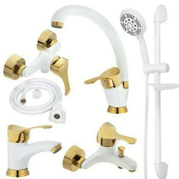 ست شیرآلات 6 تیکه لاله سفید طلایی
