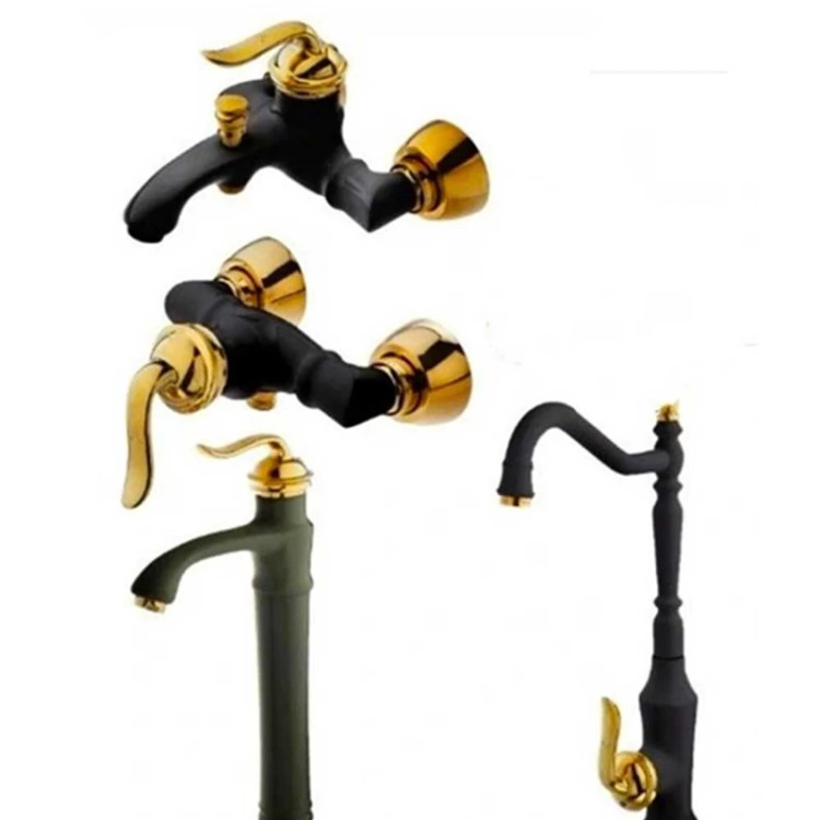 ست شیرآلات 4 تیکه مشکی طلایی بامبو