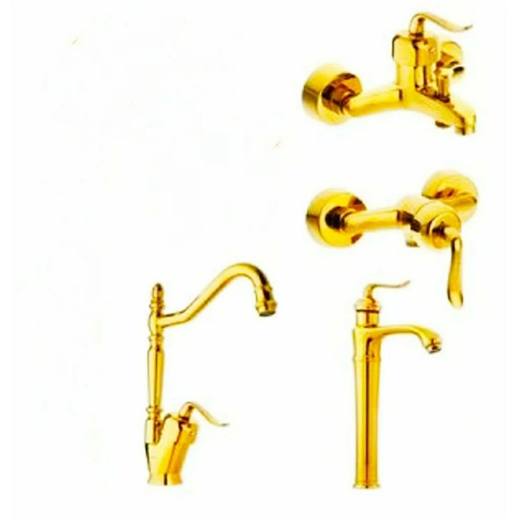 ست شیر آلات طلایی قاجاری چهار تیکه با روشویی پایه بلند