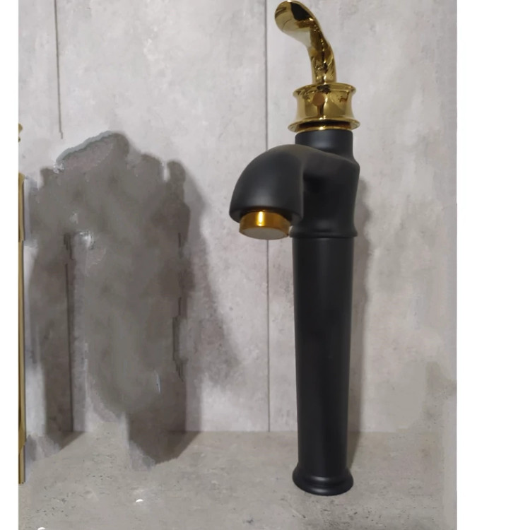 شیر روشویی پایه بلند مشکی طلایی