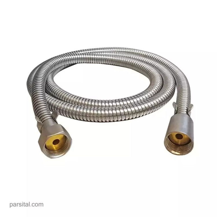 شلنگ دوش فلزی دو سر برنجی رنگ کروم مات