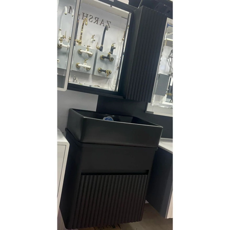 روشویی کابینتی pvc مشکی آیلار سایز 50در35 همراه با آینه و باکس