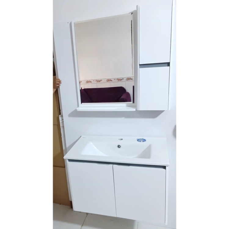 روشویی کابینتی pvc سفید همراه آینه و باکس ابعاد 70در40 و 60در40