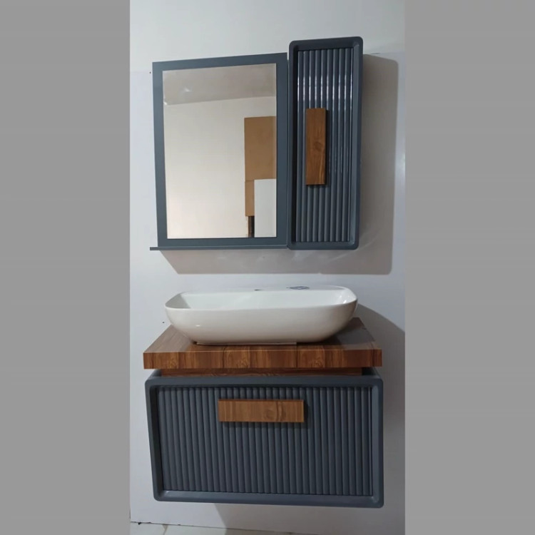روشویی کابینتی pvc طوسی لوتوس سایز 60و70 در40 همراه آینه و باکس
